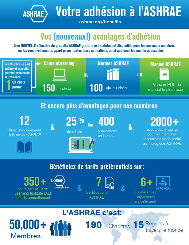 Ajoutez à cela l’adhésion au Chapitre de Montréal, soit 91 $/an (ou l’équivalent en dollars américains), et vous profiterez de tous les avantages ASHRAE (Société + chapitre) à un prix inégalable.