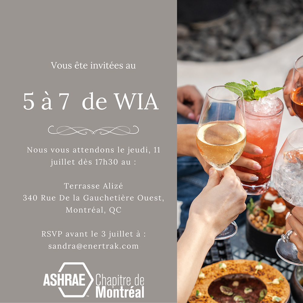 Vous êtes invitées à un petit 5 à 7 organisé par le Comité WIA (Women in ASHRAE)!