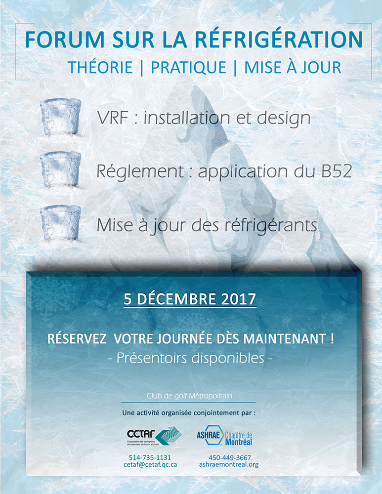 Forum réfrigération 2017 – À mettre à votre agenda dès maintenant!