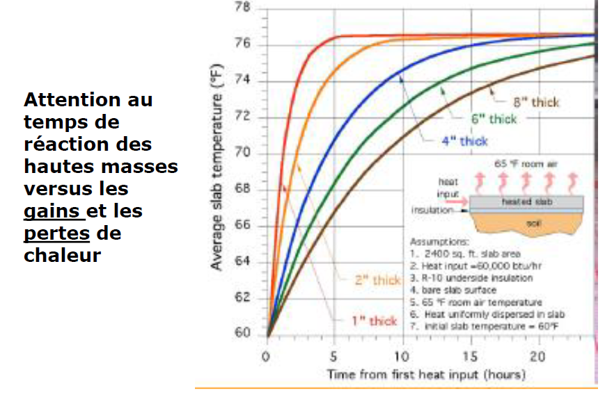 Le contrôle du système doit considérer que c’est la masse de béton qui est chauffée par le plancher radiant. Il doit comprendre et anticiper son comportement adéquatement. Par exemple, si cette masse de béton est maintenue à une température trop élevée dans un édifice de condos avec une structure de béton, les unités adjacentes seront maintenues à une température « trop élevée » et pourraient devenir problématiques avec les apports solaires de la mi-journée.