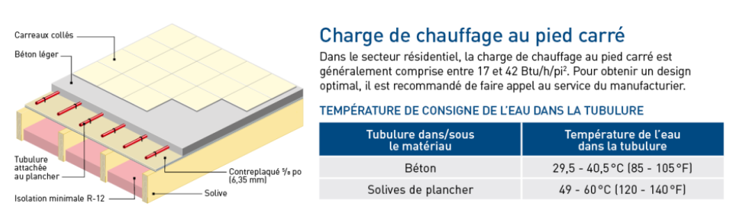 Les planchers radiants suscitent l’engouement des constructeurs dans plusieurs types d’applications variées, que ce soit dans des logements d’Office municipal d’habitation, des logements haut de gamme ou encore des immeubles commerciaux. En effet, leur grande performance et leur capacité à procurer un confort accru les rendent très populaires. Afin de s’assurer que le plancher chauffant fonctionnera durant la durée de vie complète du bâtiment, il est important de le concevoir en respectant les règles de l’art et de bien en superviser l’installation et la mise en service.