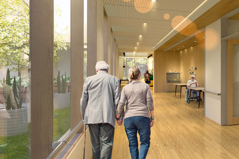 Annoncé comme « une transformation majeure des milieux d’hébergement pour les aînés », le projet de maisons des aînés (MDA), lancé par le gouvernement du Québec en 2019, a pour objectif de créer des milieux de vie à dimension humaine pour les personnes âgées en perte d’autonomie. Divisés en « unités de vie » modernes et conviviales accueillant chacune 12 résidents, les bâtiments comprennent de 12 à 192 chambres climatisées.
