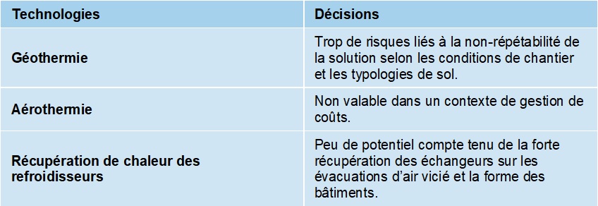 Technologies envisagées et non retenues