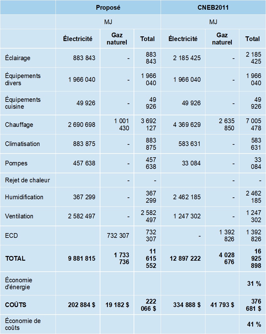 - 1 GJ/m2 de consommation énergétique pour un total de 375 000 GJ/année