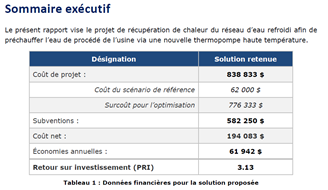 Dès sa première année d’exploitation, le système de thermopompage a permis d’obtenir des résultats satisfaisants, avec des économies d’environ 80 000 m3 de gaz naturel, une réduction de 151 tonnes des émissions de GES et une fiabilité accrue des lignes de production.