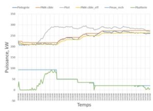 Figure 1 : Évolution de la PMA cible, puissance intégrée et puissance batterie