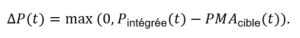 Au début de chaque cycle de facturation, l’opérateur fournit à la batterie une valeur PMA_cible. Sur cette base, la batterie doit écrêter toute puissance intégrée supérieure à la cible. Mathématiquement :