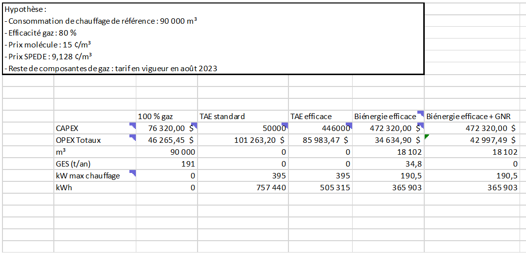 Pour l’exemple présenté dans cet article, la subvention pour le passage à la biénergie serait de 390 500 $ dans le cadre du parcours sur mesure.