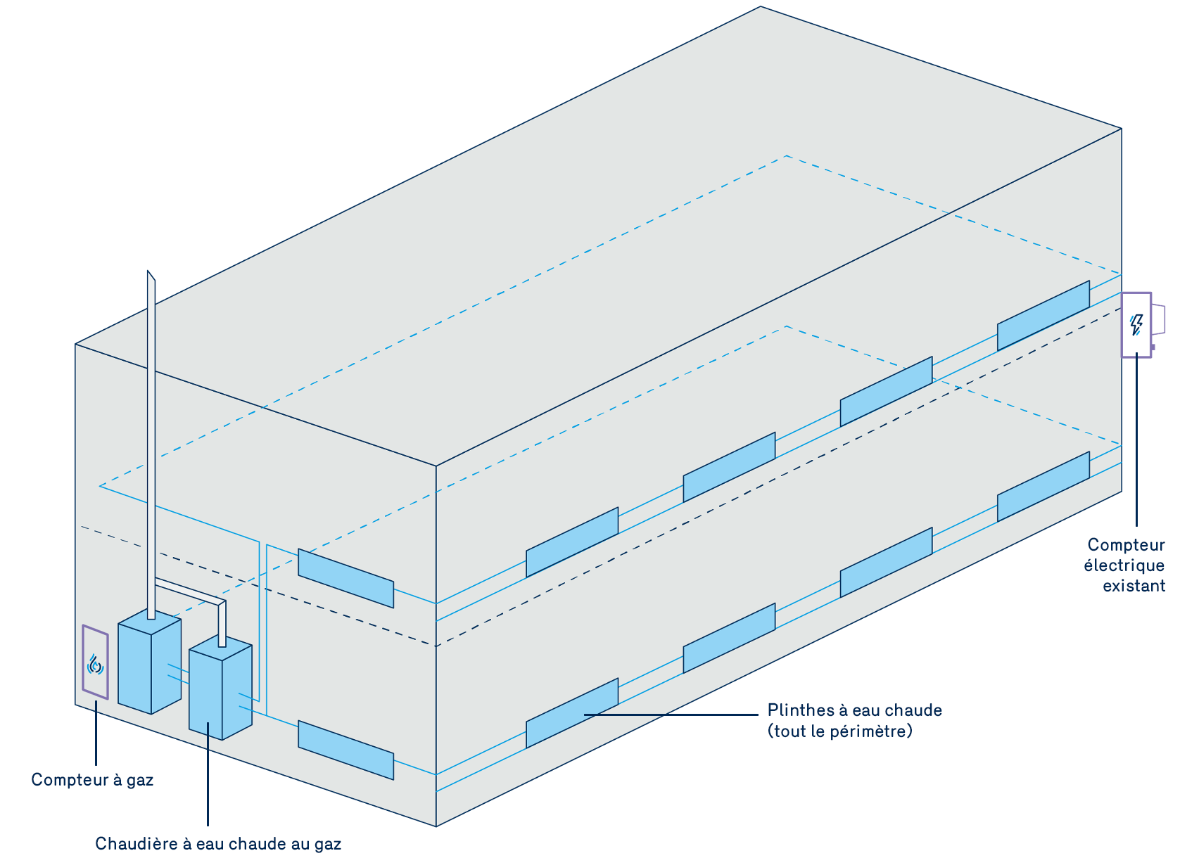 C – Scénario tout électrique efficace : remplacement de la source de chauffage au gaz par des unités de themopompage.