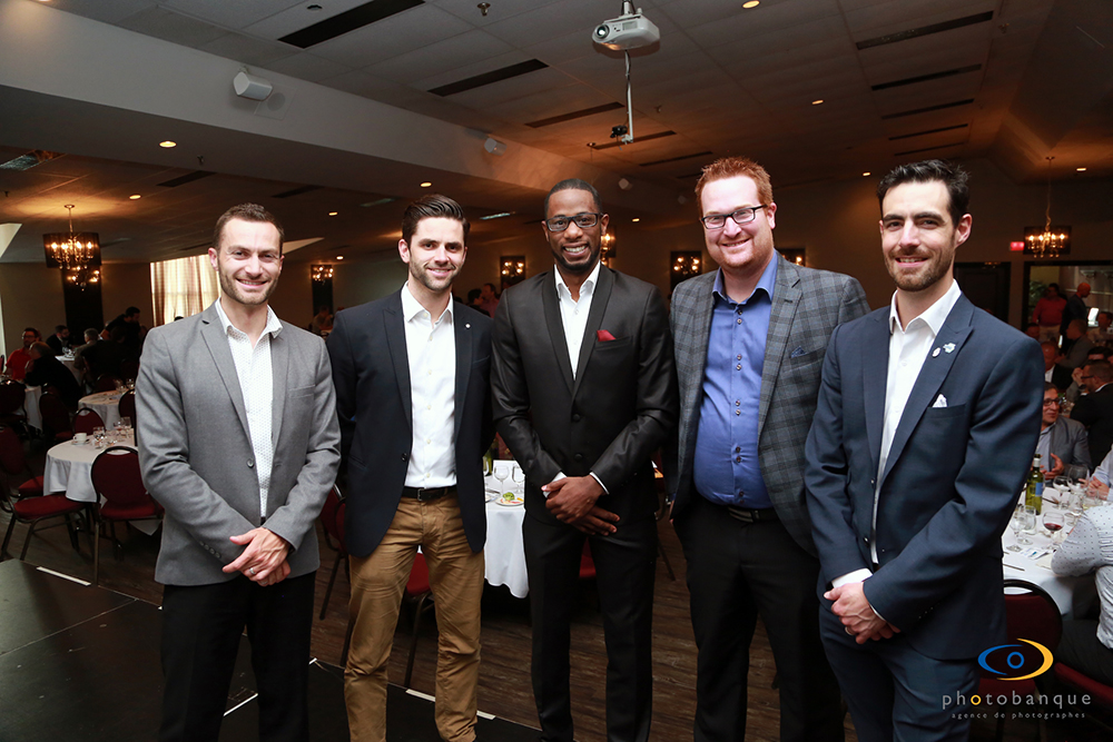Simon Khaled et Samuel Lavoie et quelques organisateurs de l’événement soit Anthony Sander Sainjour, Michel Landry et Mathieu Rondeau.