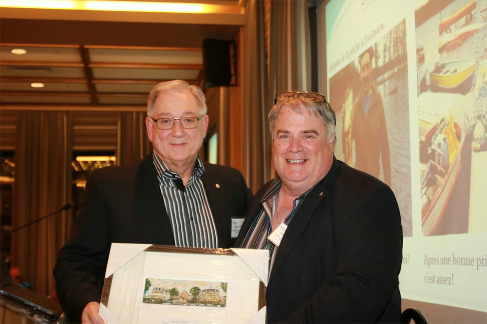 Entouré de sa conjointe et de sa famille, il a été très surpris par cet hommage, lui qui croyait avoir été convié à un souper des anciens-présidents! Avec émotion, il s’est adressé à l’audience pour remercier tous et chacun de lui avoir permis d’exercer sa passion pendant autant d’années et d’accéder à cette liste honorifique, le dixième à y inscrire son nom! Encore une fois, merci Marcel.