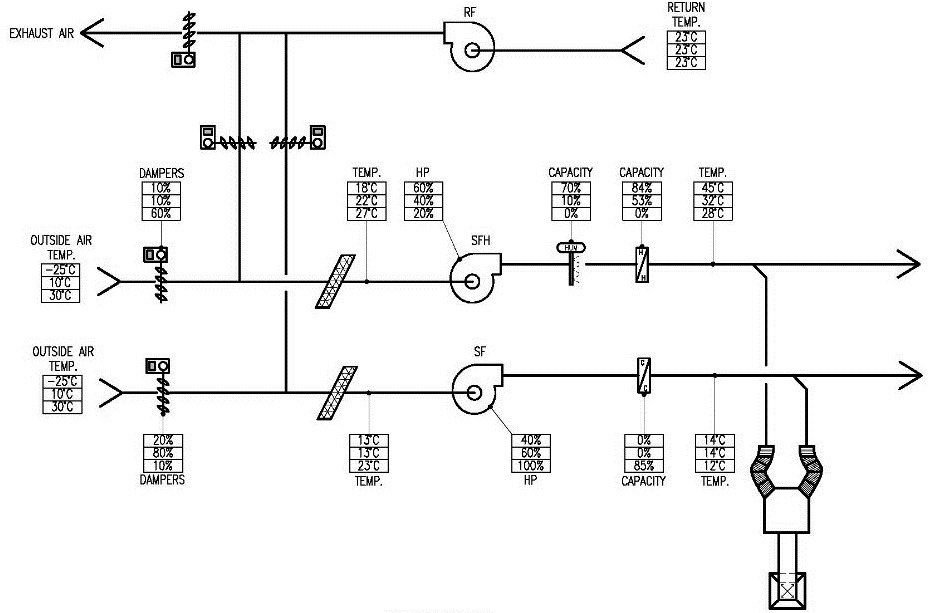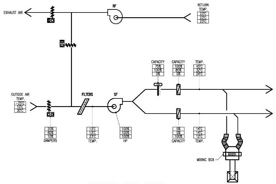 Figure 1: Typical operating conditions of the existing dual-duct ventilation system