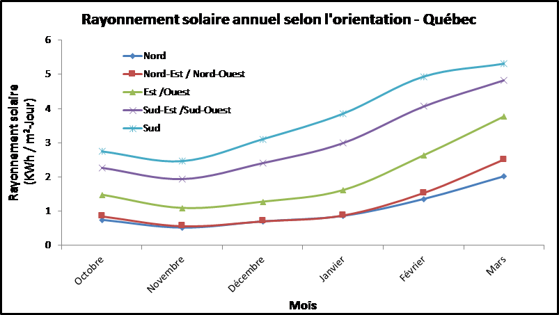 Figure 1 – Rayonnement solaire des mois d’hiver selon l’orientation