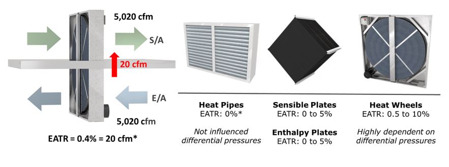Des données typiques de EATR pour les différents types de récupérateurs ont été présentées. M. Pieper nous a rappelé que tous les systèmes comportent une petite portion de fuite qui peut entrer dans la marge d’erreur même lorsque le manufacturier affiche un EATR de 0% et qu’il faut donc porter une attention particulière dans les applications critiques.