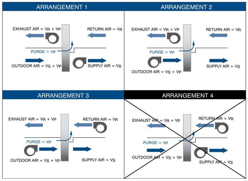 Dans le cas d’un système avec roue thermique sur un système 100% d’air neuf, un «purge» peut être installé pour réduire significativement le EATR bien que sans ce dispositif, la roue thermique offre déjà les niveaux appropriés pour les classes 2 et 3.