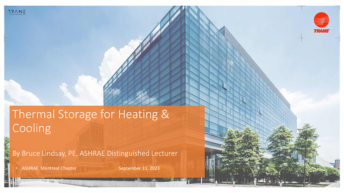 Présentée par Bruce B. Lindsay PE, CEM ASHRAE, Distinguished Lecturer ASHRAE, Business Development Team leader, Thermal Energy Storage Trane Technologies