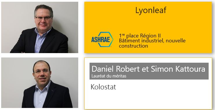 Nous sommes fiers d’avoir pu récompenser cinq projets de membres provenant de firmes qui œuvrent dans la région de Montréal et qui sont actives au Chapitre de Montréal : Pageau Morel, FNX-Innov, Ecosystem, Kolostat et Martin Roy et associés. Ces cinq candidatures se sont démarquées parmi tous les projets présentés des neuf chapitres de la région de l’Est du Canada dans leur catégorie respective.