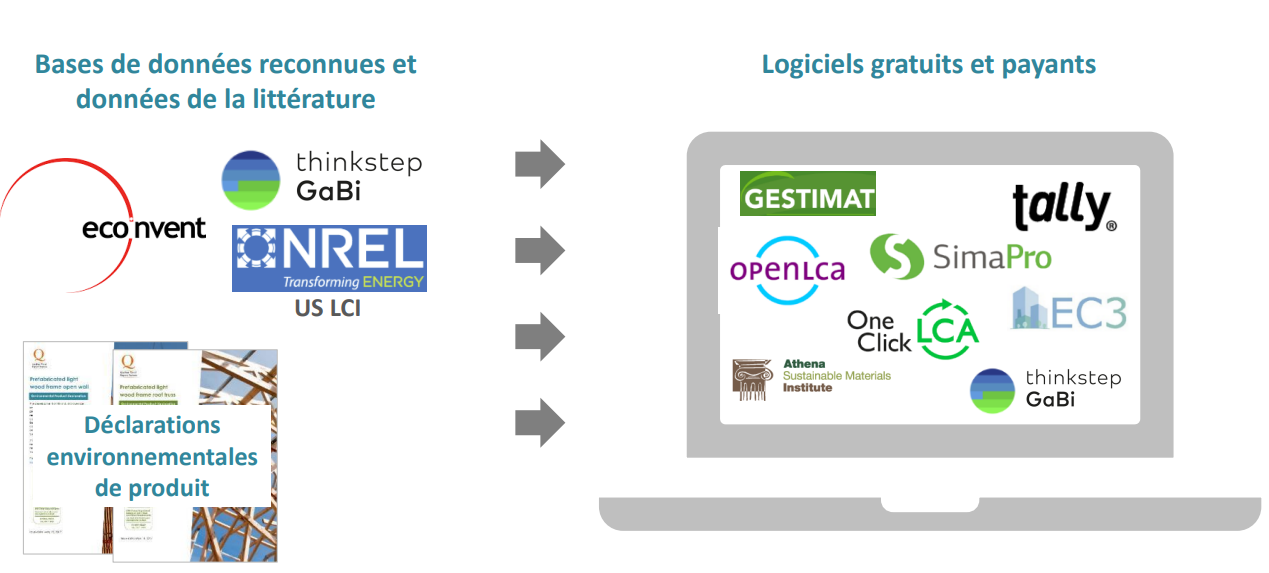 Plusieurs normes de l’industrie offrent des méthodologies reconnues qui suivent une approche du cycle de vie pour quantifier le carbone intrinsèque. On parle entre autres d’ISO 21930, ISO 14040 ou encore EN 15804 :2012+A2. Elles vont plus où moins loin dans leur demande d’évaluation du carbone intrinsèque. Afin de les quantifier, certaines bases de données et données de littératures sont reconnues et des logiciels peuvent être utilisés pour la comptabilisation, certains gratuits et d’autres payants. Mme Chayer nous en a présenté quelques exemples. Une multitude de sources d’informations et de logiciels sont donc disponibles.