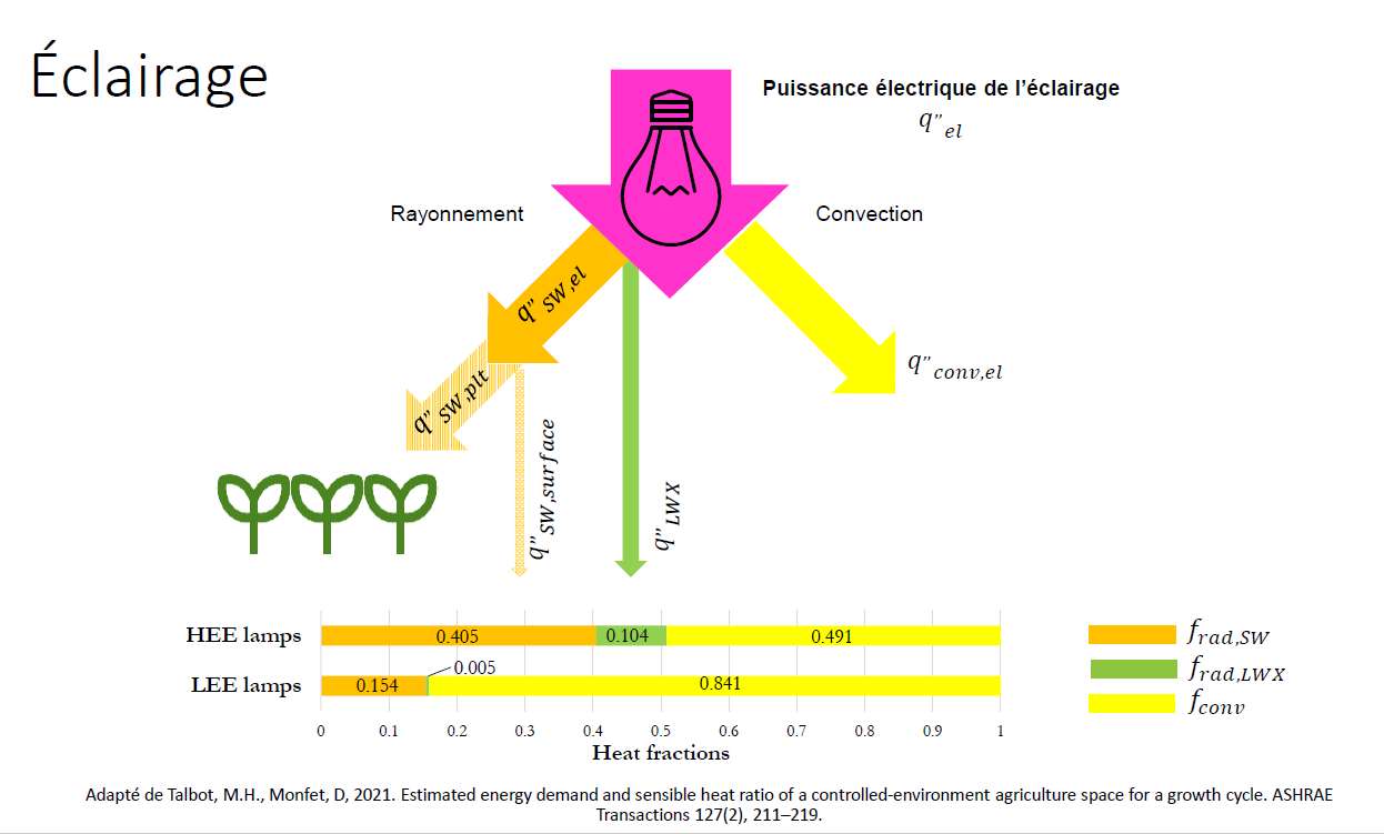 Figure 3: Flux de chaleur et lumière induits par l’éclairage artificiel