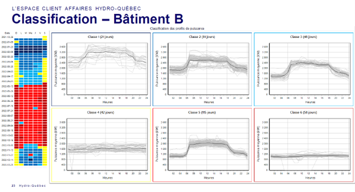 Un regroupement des puissances journalières selon le calendrier et par groupes permet également de voir l’opération lors des fins de semaines, en semaine, en été versus en hiver.