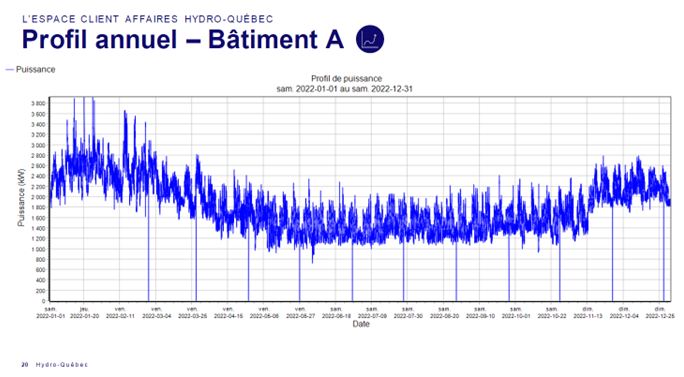 L’espace client d’Hydro-Québec contient beaucoup plus que les données de facturation. M. St-Cyr a présenté lors de la soirée d’avril la procédure d’accès aux données pour vos clients commerciaux (tarif M, gros G, DP, DM). Pour les professionnels, cette étape est importante afin de pouvoir télécharger directement les données d’énergie au 15 minutes, pour effectuer des analyses énergétiques ou pour évaluer les potentiels de réduction de la puissance.
