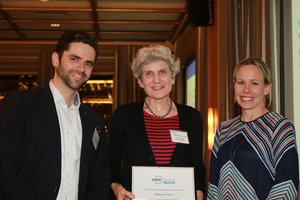 En deuxième partie, nous avons eu la chance d’accueillir le docteur Stephanie Taylor. Madame Taylor a débuté sa carrière comme médecin oncologue. Après plusieurs années, voyant que trop de patients décédaient de maladies infectieuses contractées au cours de leur hospitalisation, Mme Taylor a voulu faire une différence et agir sur la qualité de l’environnement dans les hôpitaux. C’est ce qu’il l’a poussé à entreprendre des études en architecture et en ingénierie. Devenue chercheure, elle étudie maintenant l’impact des bâtiments sur la santé des occupants. C’est dans cette optique qu’elle est venue nous présenter sa conférence traitant de l’importance de l’humidification sur la santé des usagers dans les hôpitaux.