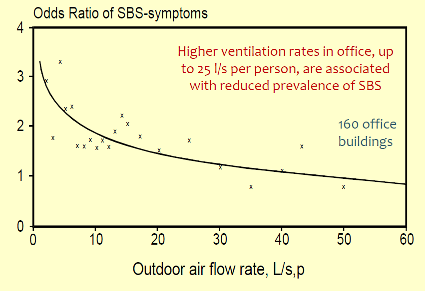 Image 2 : Occurrence des SBS en fonction du taux de ventilation par personne.