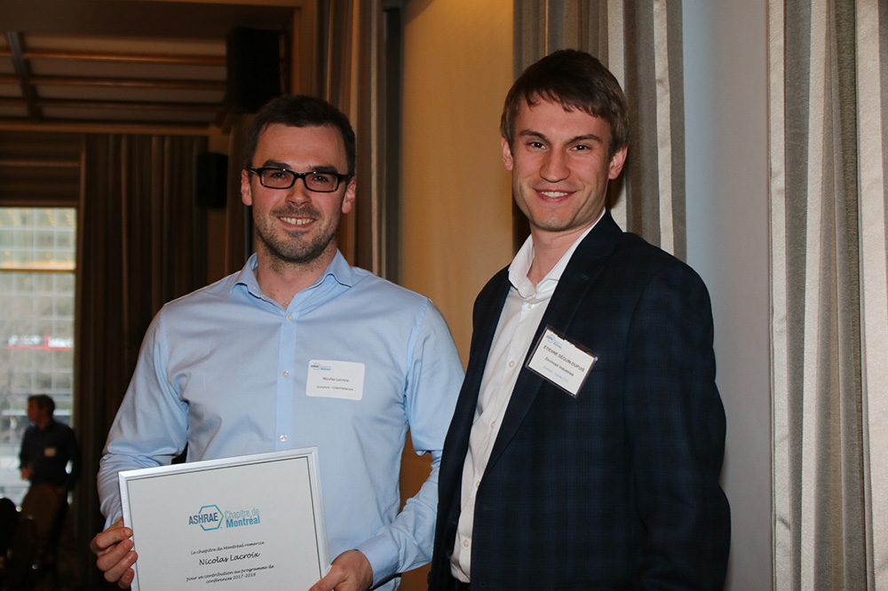 Le 9 Avril dernier, le chapitre ASHRAE de Montréal tenait son quatrième souper-conférence de l’année durant lequel étaient abordés les sujets de fonds de recherche ASHRAE et un bref historique des bourses de l’organisation disponibles pour les étudiants. Par la suite, messieurs Nicolas Lacroix, ing., M. Ing., PA LEED O+M et Patrice Levesque ing., RCx sont venus nous parler.