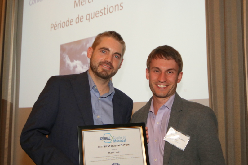 Le 16 septembre dernier, le Chapitre de Montréal tenait sa soirée recrutement des membres. Pour cette occasion, le Chapitre a reçu la visite de M. Frédéric Genest, ingénieur de recherche au Centre de recherche de CanmetÉNERGIE dont la conférence technique portait sur les notions d’adaptation au réchauffement et sur la modélisation des changements climatiques. Puis, en deuxième partie, pour la conférence principale, le Chapitre a eu le plaisir d’accueillir M. Eric Landry, associé chez steamOvap technologies inc. Sa présentation expliquait comment maximiser l’efficacité d’un système d’humidification isotherme dès l’étape de conception.